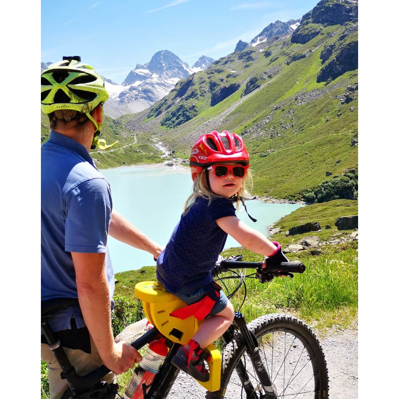 Da sich der Schwerpunkt weiterhin zwischen den zwei Rädern befindet, merkt man kaum einen Unterschied bezüglich des Fahrverhaltens. Der Sitz ist mit 900 Gramm ein Leichtgewicht und lässt sich auf jedem Fahrrad mit Oberrohr montieren. Selbst breite Rahmen (z.B. Ebike) sind kein Problem. Die Befestigung ist einfach und der Sitz kann innerhalb weniger Minuten montiert oder demontiert werden, ohne dass dafür Werkzeug benötigt wird. Der Rahnen wird geschont. Das Kind wird an der Hüfte und an den Füssen mit Sicherheitsgurten gesichert.